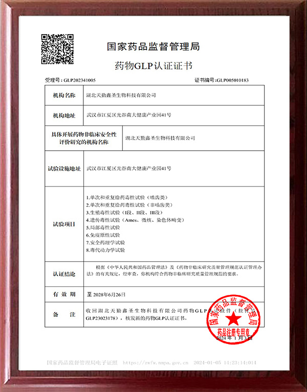 • 藥物GLP認證批件
